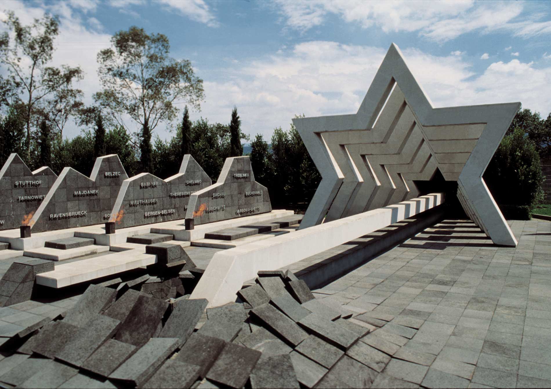 When looking through the tunnel formed by the six stars, one sees a single star, representing the future of Judaism, framing the intense green of the surrounding vegetation. Completing the composition, are six eternal flames, each flame representing one of the 6 million victims, evoking the memory of the multitude of innocents that suffered and died during the holocaust. The memorial also contains ashes brought from Auschwitz and buried in a container.